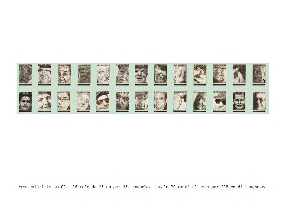 Particolari in stoffa. 26 tele da 25 cm per 35. Ingombro totale 70 cm di altezza per 325 cm di lunghezza.. Guarda..